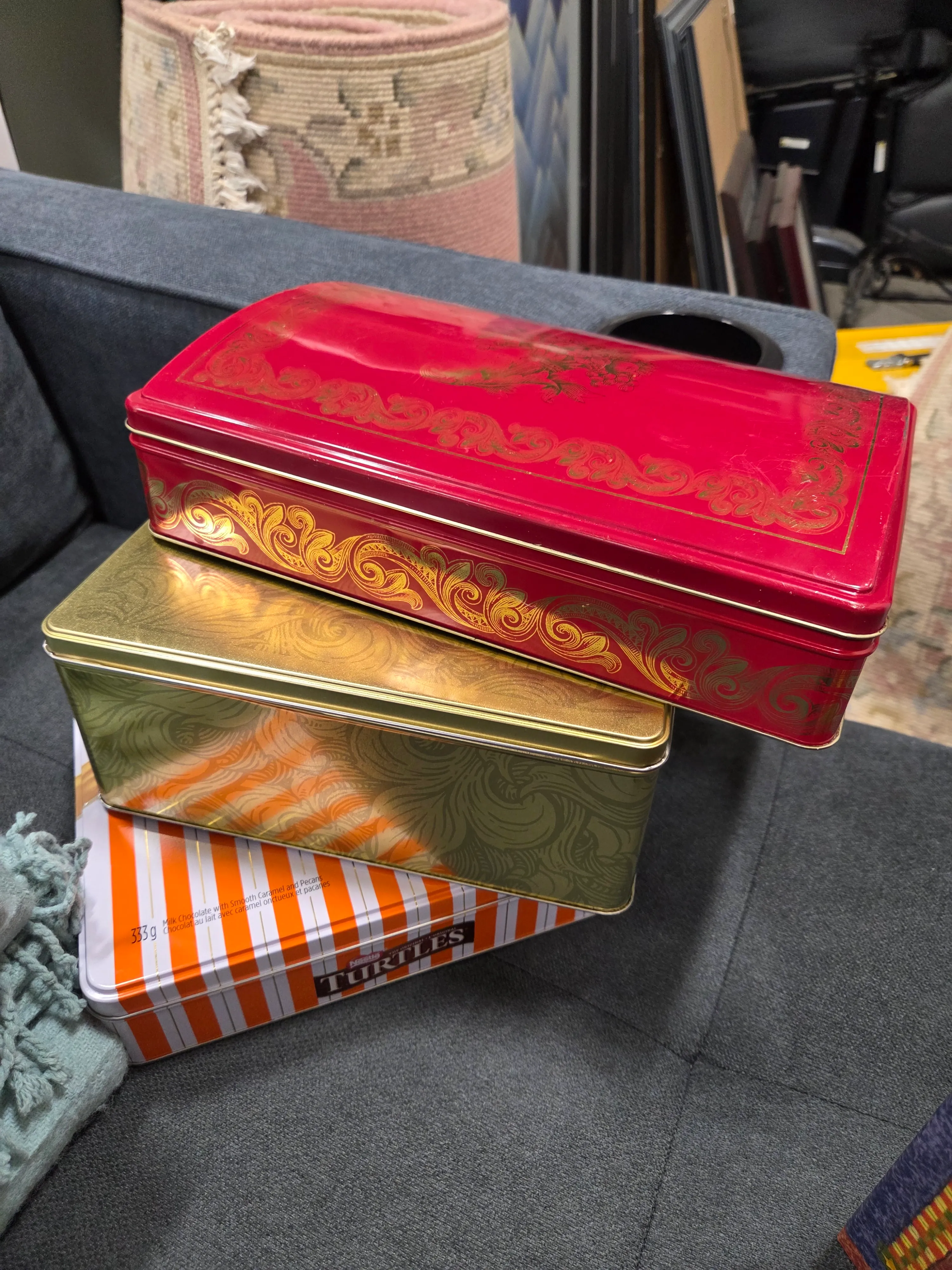 My mom is letting go of a bunch of holiday items due to a recent move/ downsize. These are used once chocolate tins which would be good for gifting home made cookies in. Pickup for smaller offers at 500 Carlingview drive Toronto during monday to friday 830am to 430pm by appointment Btz value is for all 3 good size tins.