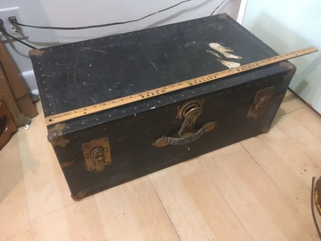 This was salvaged from an old barn. It’s a useful size and smaller than some of the other steamer trunks I have seen. Has had some water damage on the inside at some point but no mould. Would love a 6 pack of beer for this one . Make me an offer.