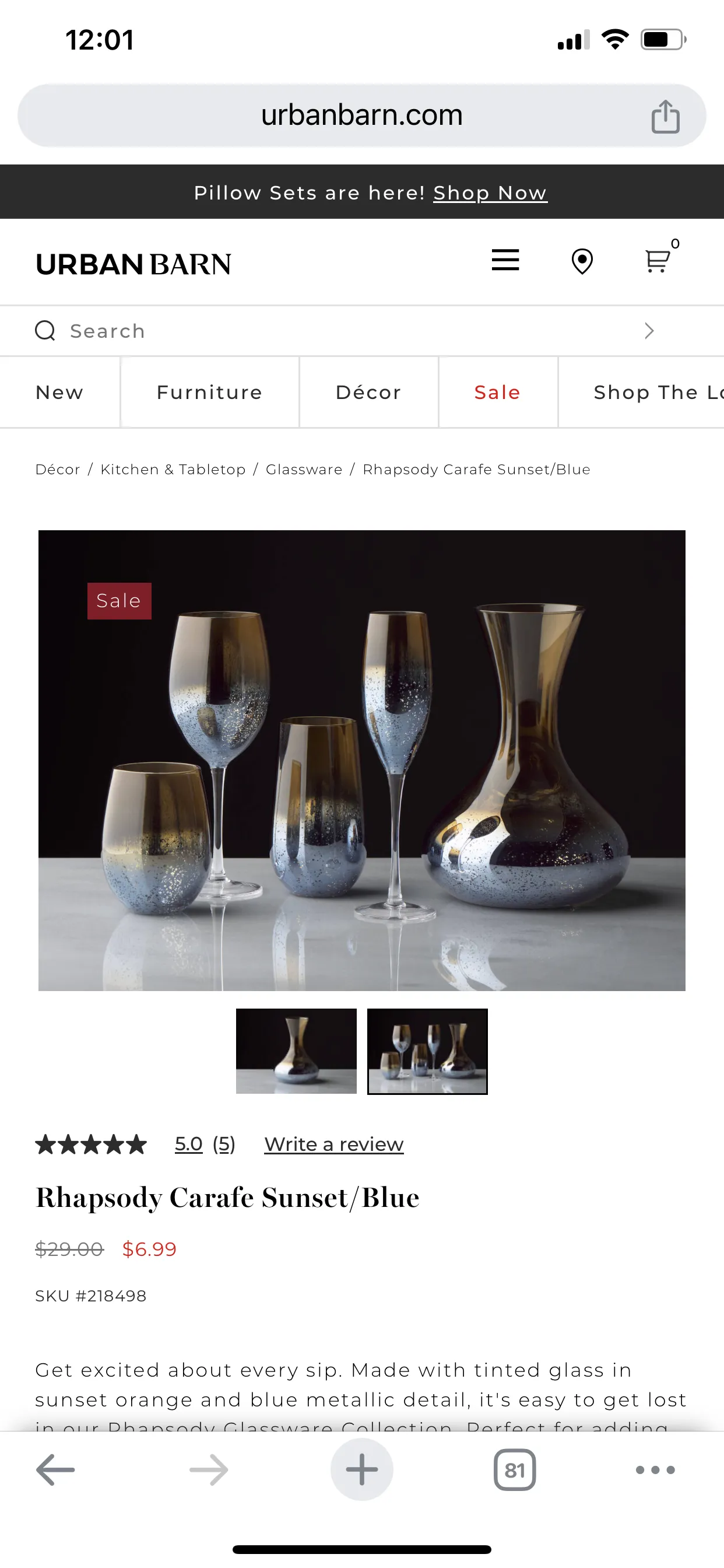 Brand new from Urban Barn. Everything but the decanter are still in original packaging.