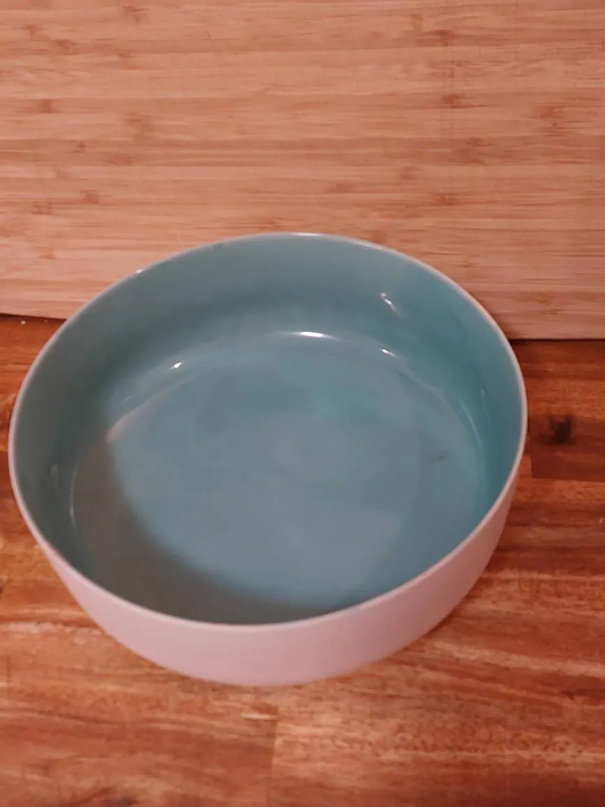 Light blue bowl, 8 1/2" diameter, 3" tall.