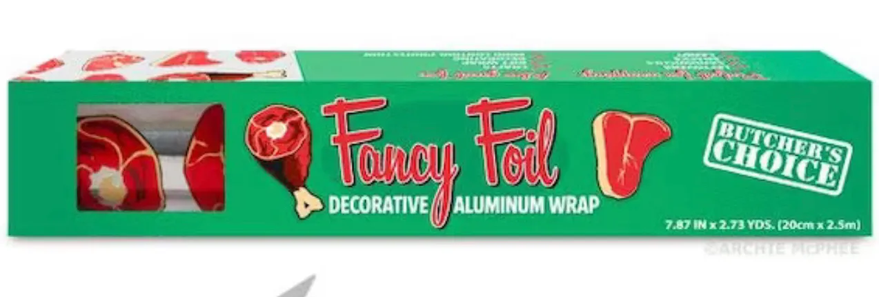 Food foil that has cartoony meat on it. Will throw in with any other trade.