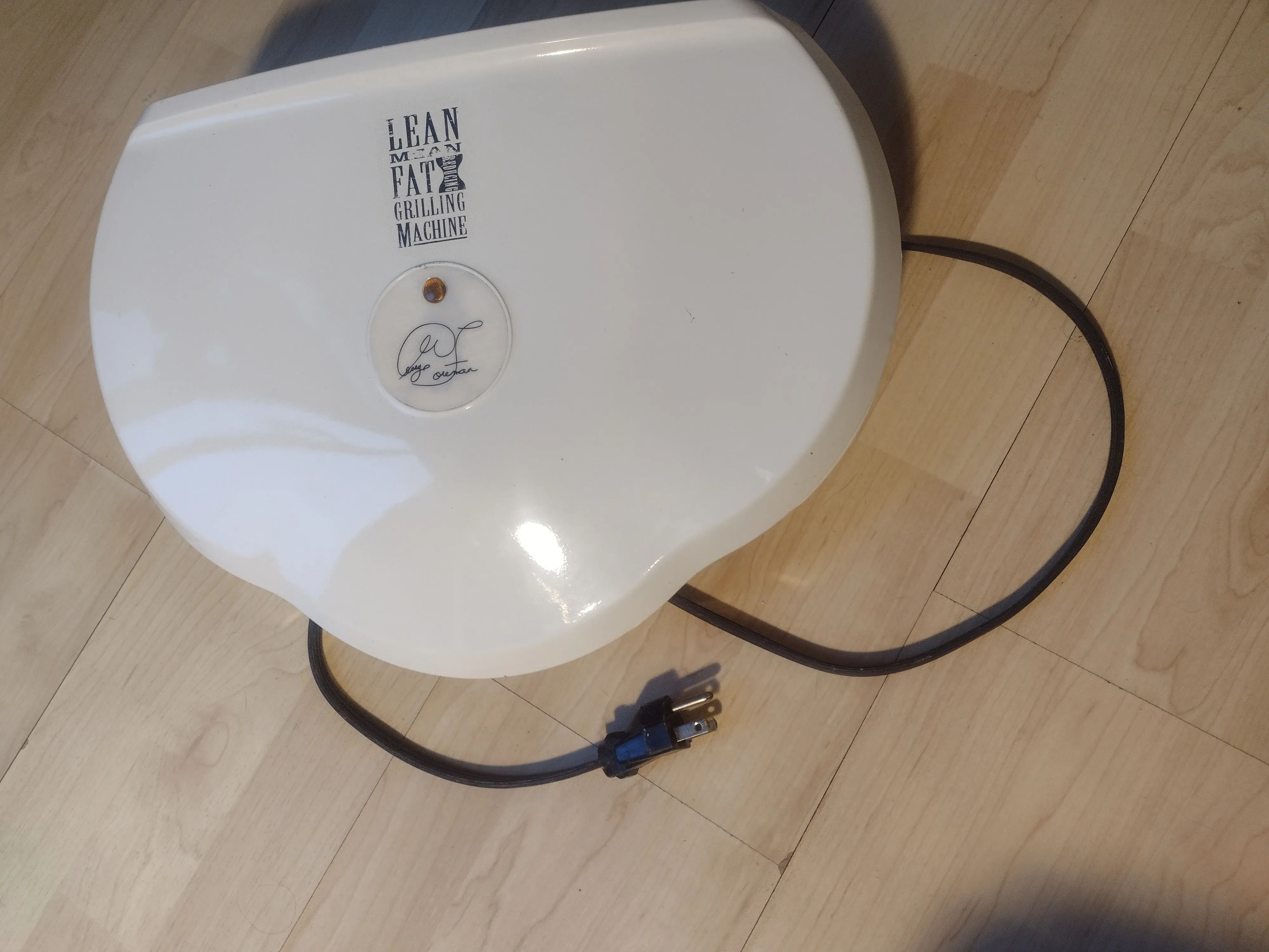 Foreman grill, a bit scratched at the bottom, still works well though. Not looking for much.