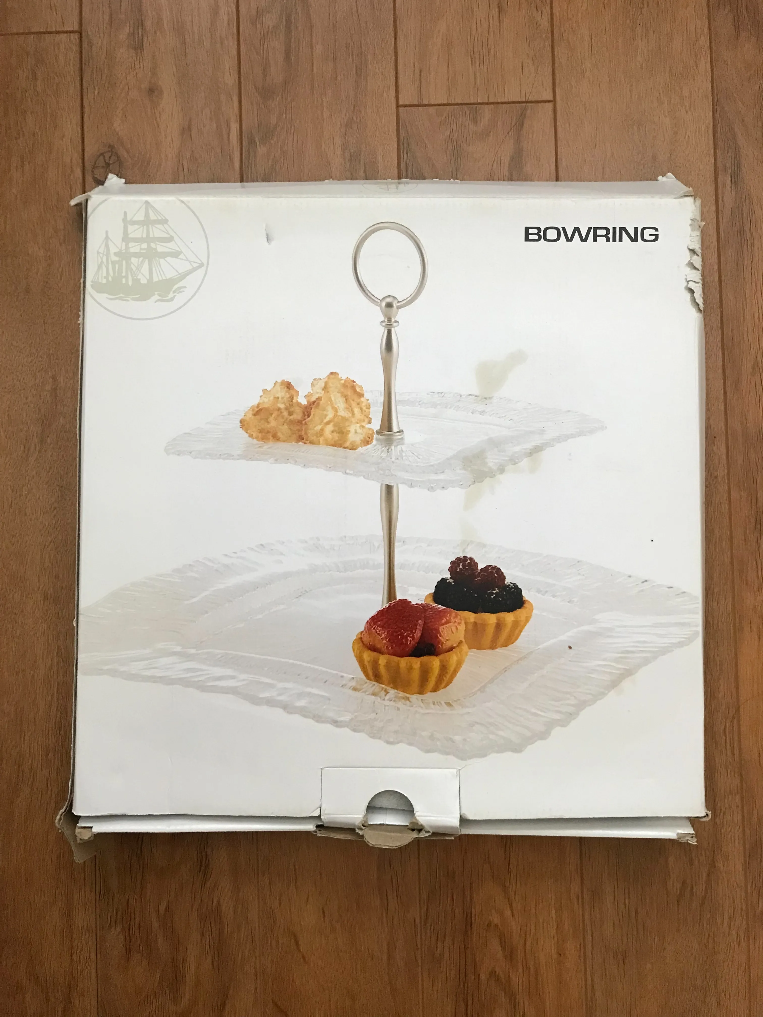 A beautiful glass dessert stand from Bowring. Trading it since I have another one.