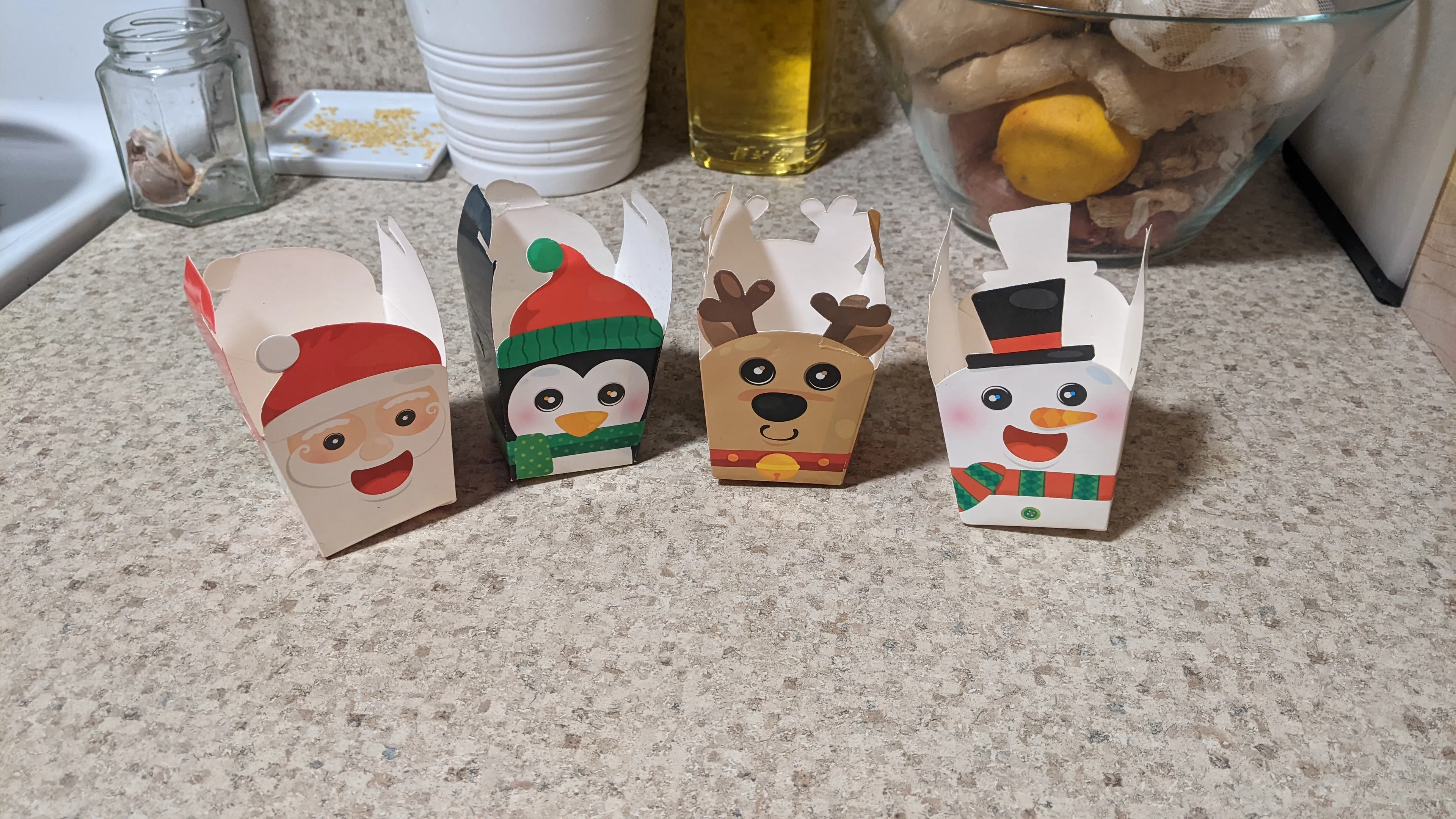5x5x H6cm Perfect little Christmas boxes Reindeer, snowman, Santa and a penguin