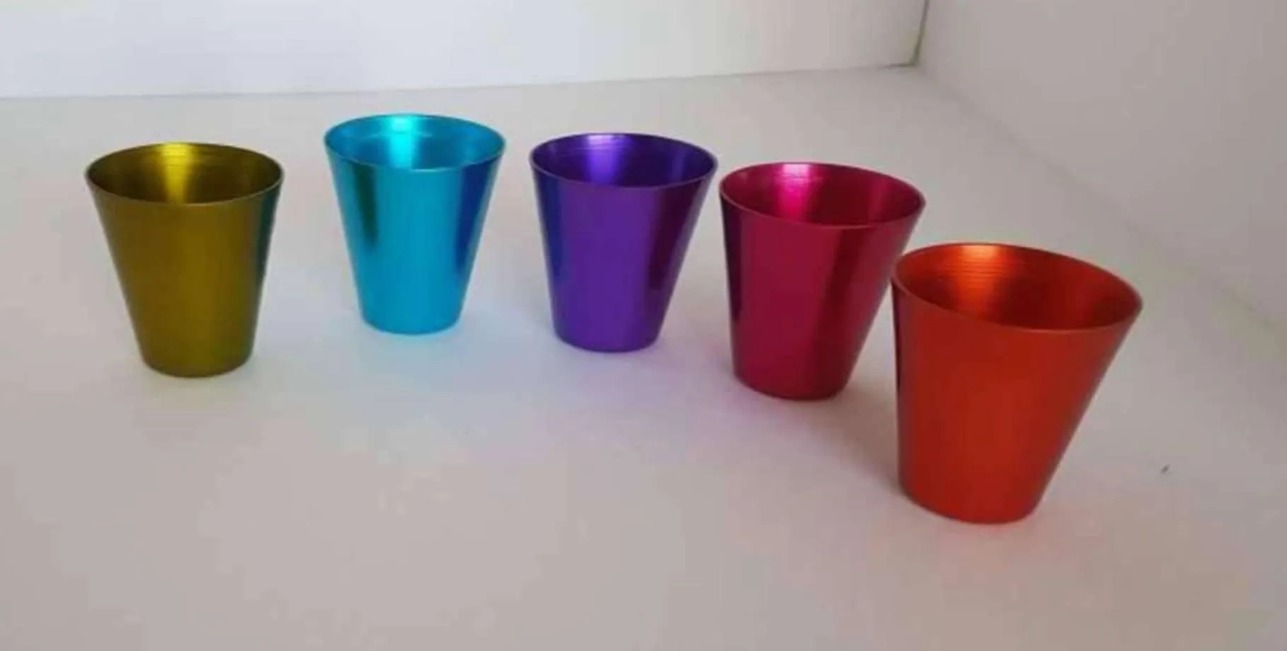 Metal shot glasses in a rainbow of colours. #shotglasses