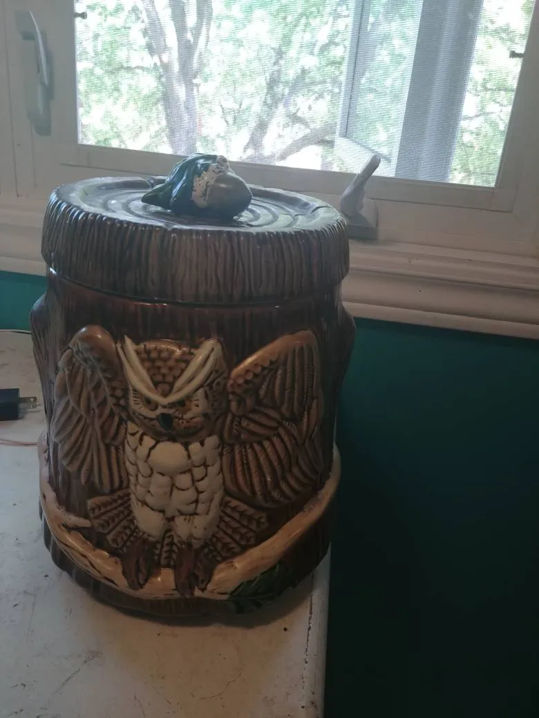 Ceramic with kitchsy owls and acorns! It did crack but I've resealed and crazy glued. Not looking for much. Too large for my home #kitchen