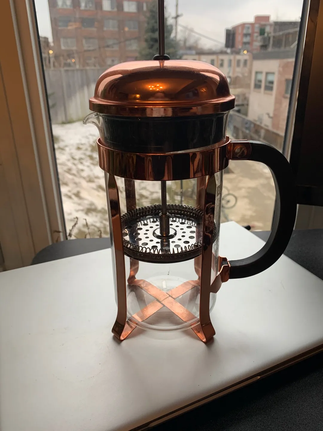 Crack in the glass shown in 3rd pic, does not leak significantly. I have been using with a tea towel or paper towel underneath but not really that necessary. Replacement beaker available on the bodum website.