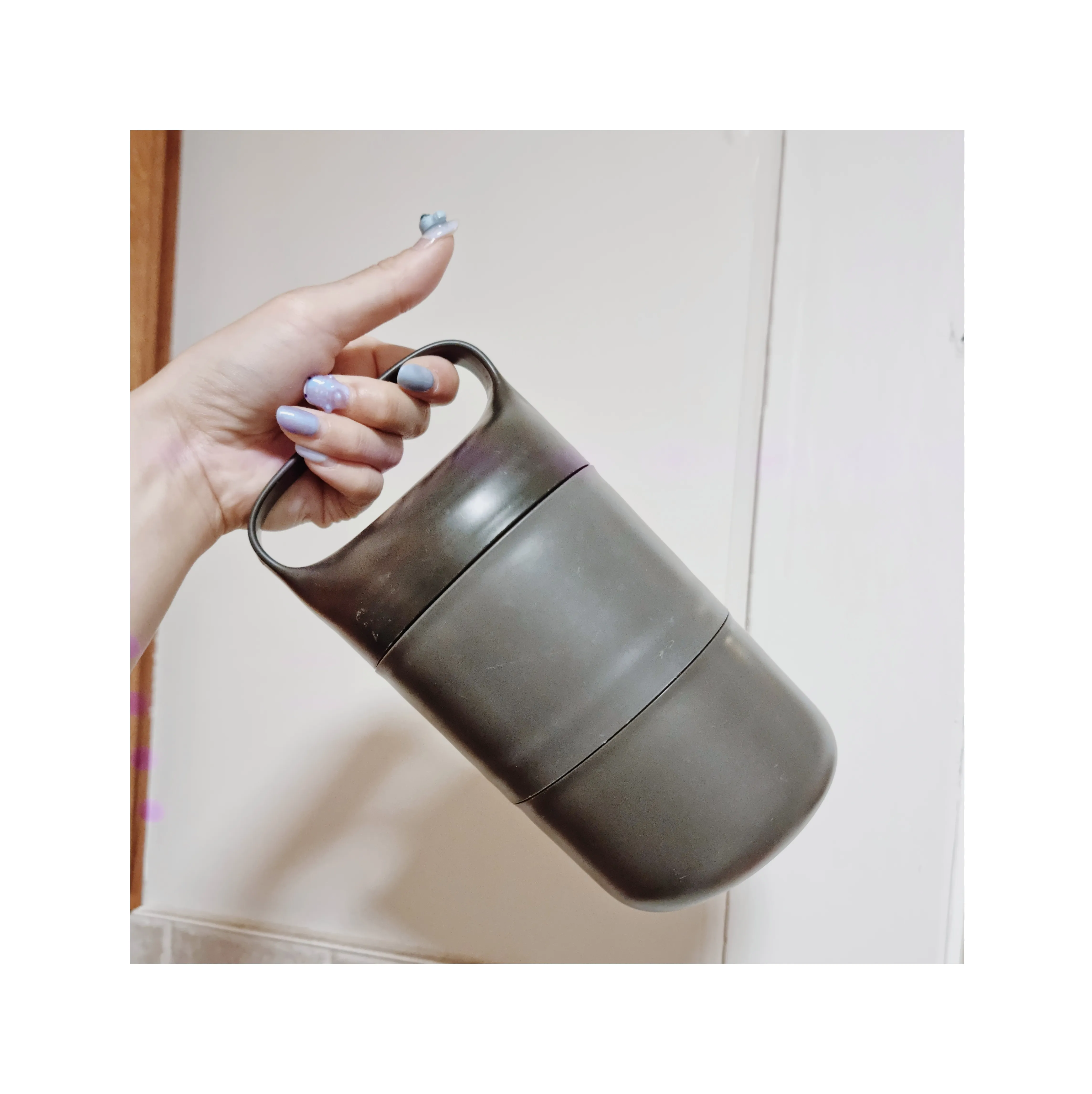 super portable minimalist lunch holder, can be hung on rope or bigger carabiners or even on a bag strap. twist to close and stack.
