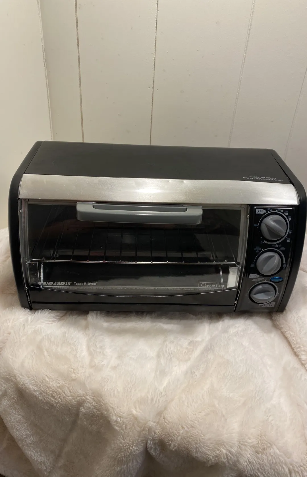 Black & Decker Toast-R-Oven. Works well I just upgraded. Measures: 15.5 inches across 9 deep 8 high