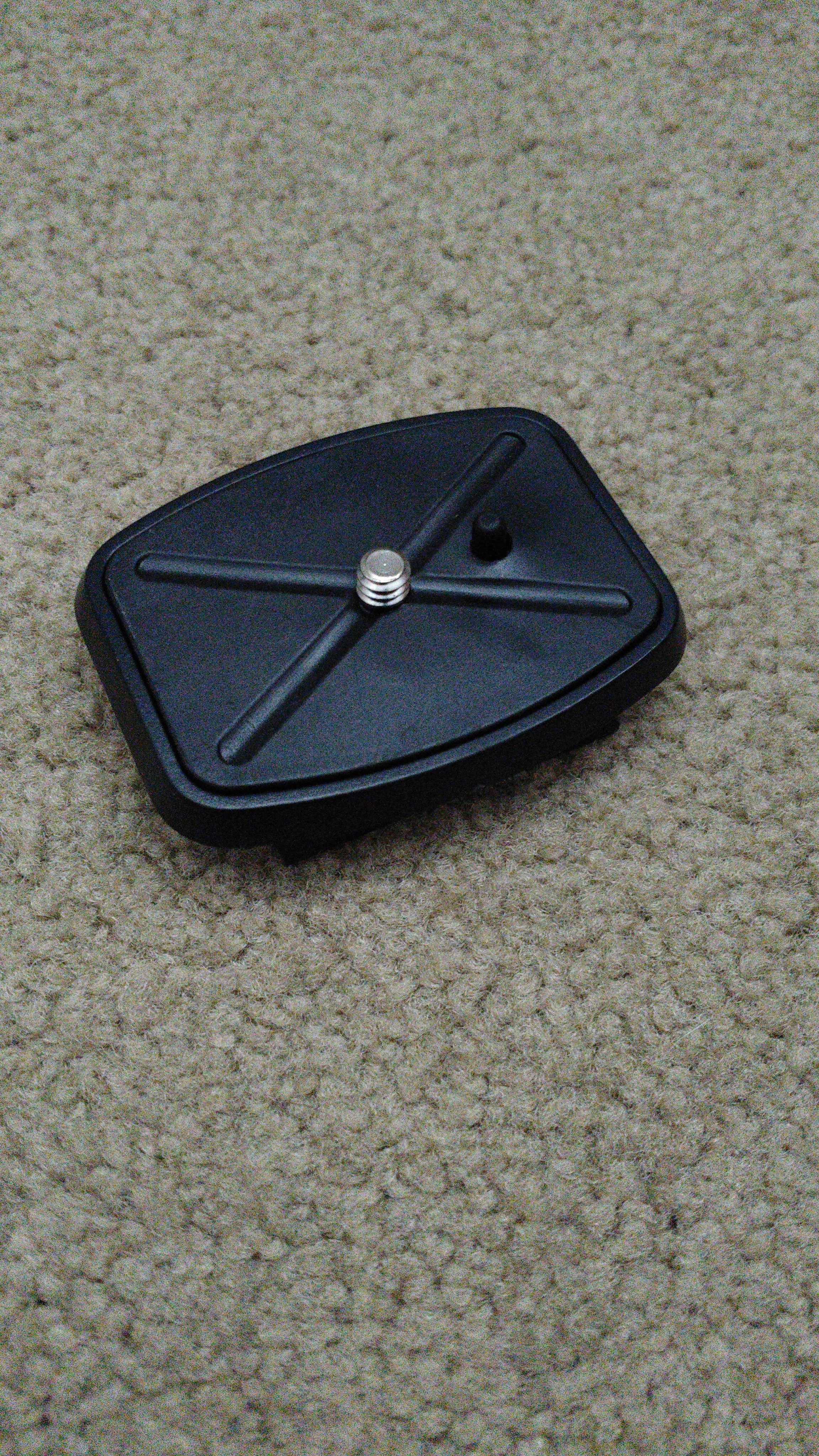 Screwing tripod plate. No idea of specs. Available in Riley Park/Kensington (or Chinatown on some weekdays).