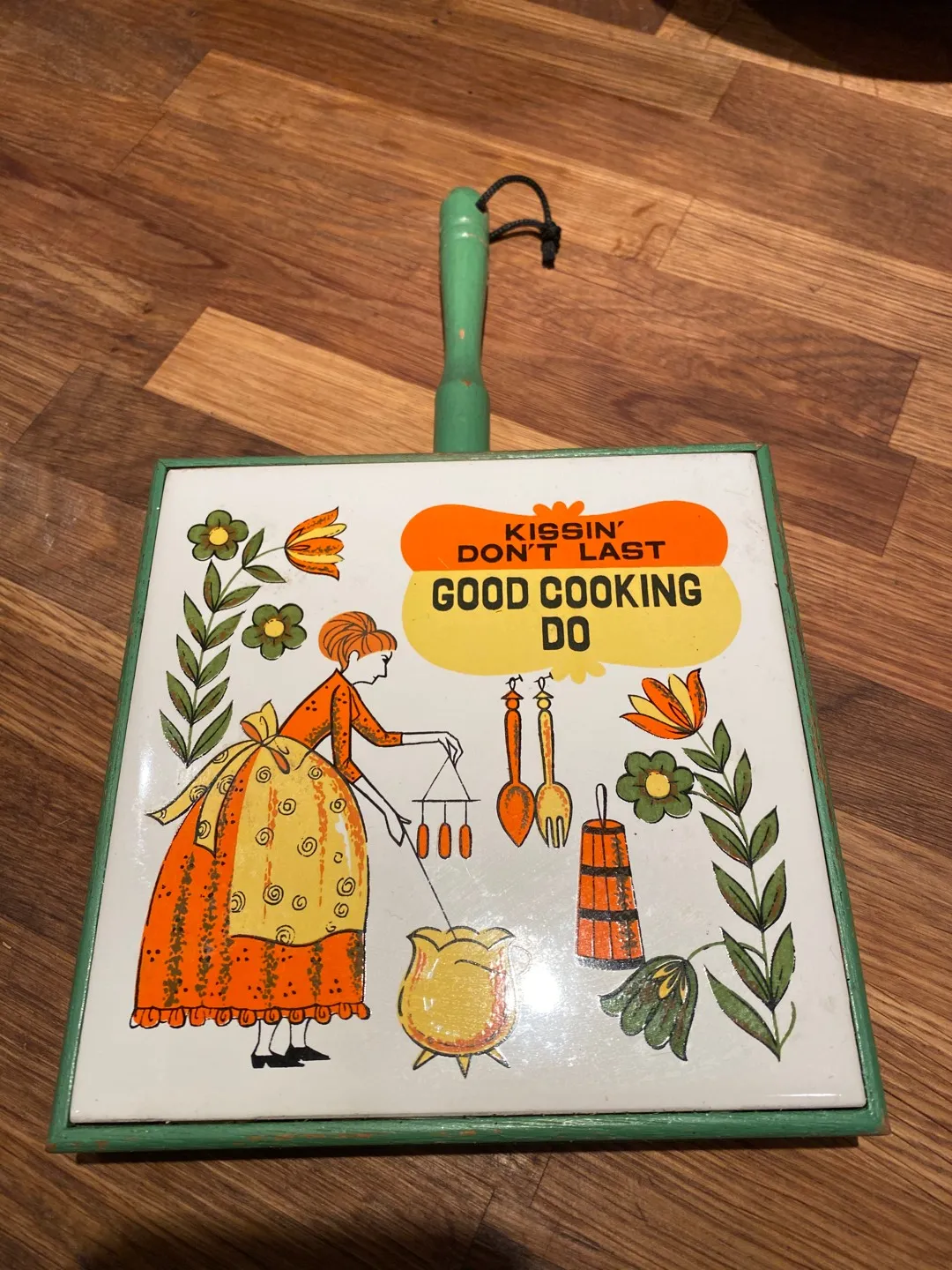 Such a fun vintage pieces for your kitchen that can also be hung up.