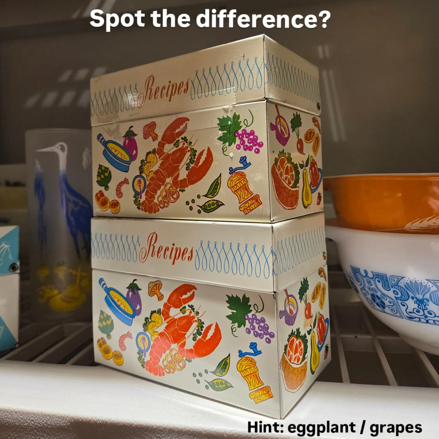 For putting recipe cards in! I am trying not to hoard doubles. So despite a small difference in purples in the printing, one of these will be available for trades. Check my iso list. I live an hour from the city so I prefer to meet at my storage spot at my office. I will bring this from home to 391 attwell drive. Pickup during 830to430 monday to friday. I can deliver to your door for vintage colourful pyrex I dont have in my collection. Or generous offer from iso list.