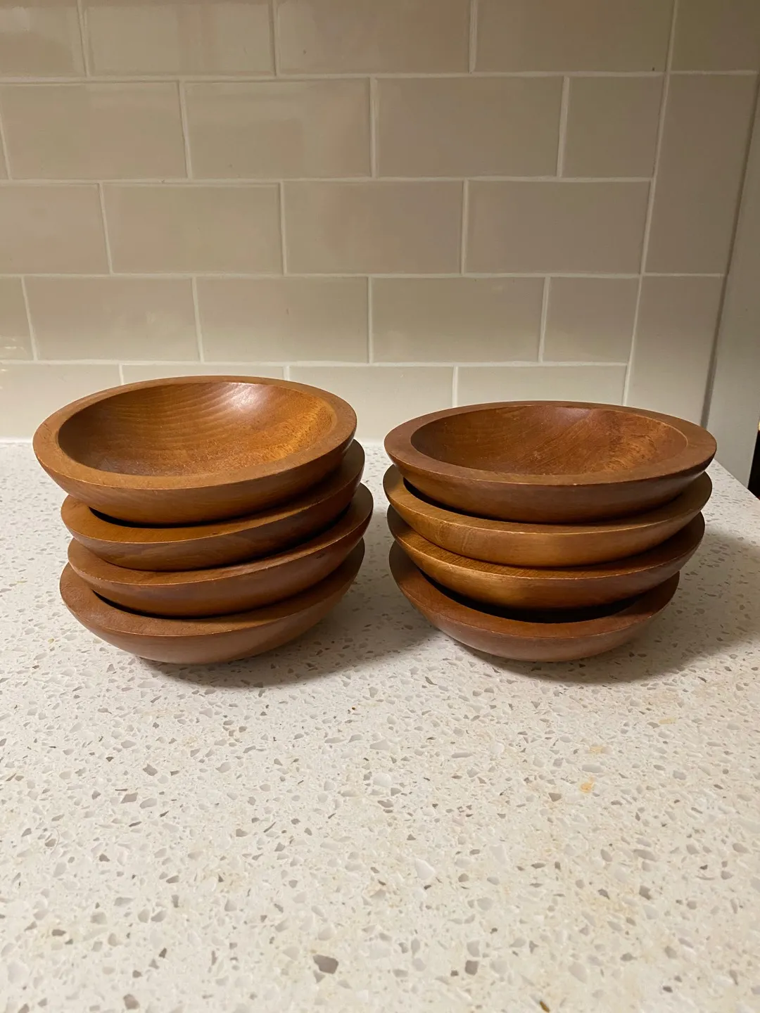 Set of 8, yes count ‘em 8! Baribocraft teak wooden bowls. Made in Canada. #mcm