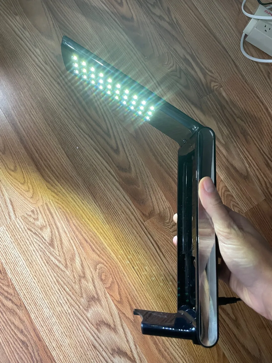 Works very well, outside has wear but that is the nature of the material because I didn’t use it that much. Retail was $130, trade value $60. Great for having consistent lighting with artwork. Portable. Can use batteries instead of usb. Does not store a charge without batteries.