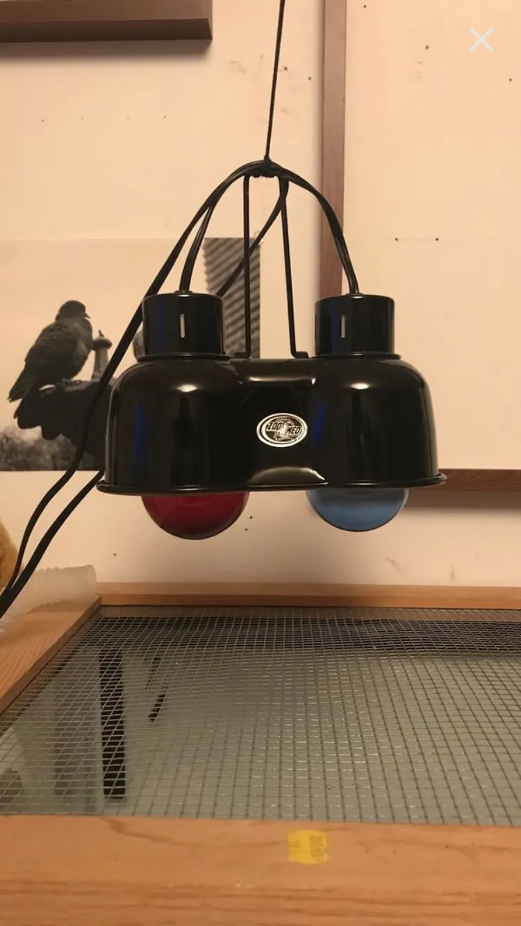 Too small for my new tank. It’s in perfect condition, only used for a few months. Both day(blue light) and night(red light)bulbs are included!