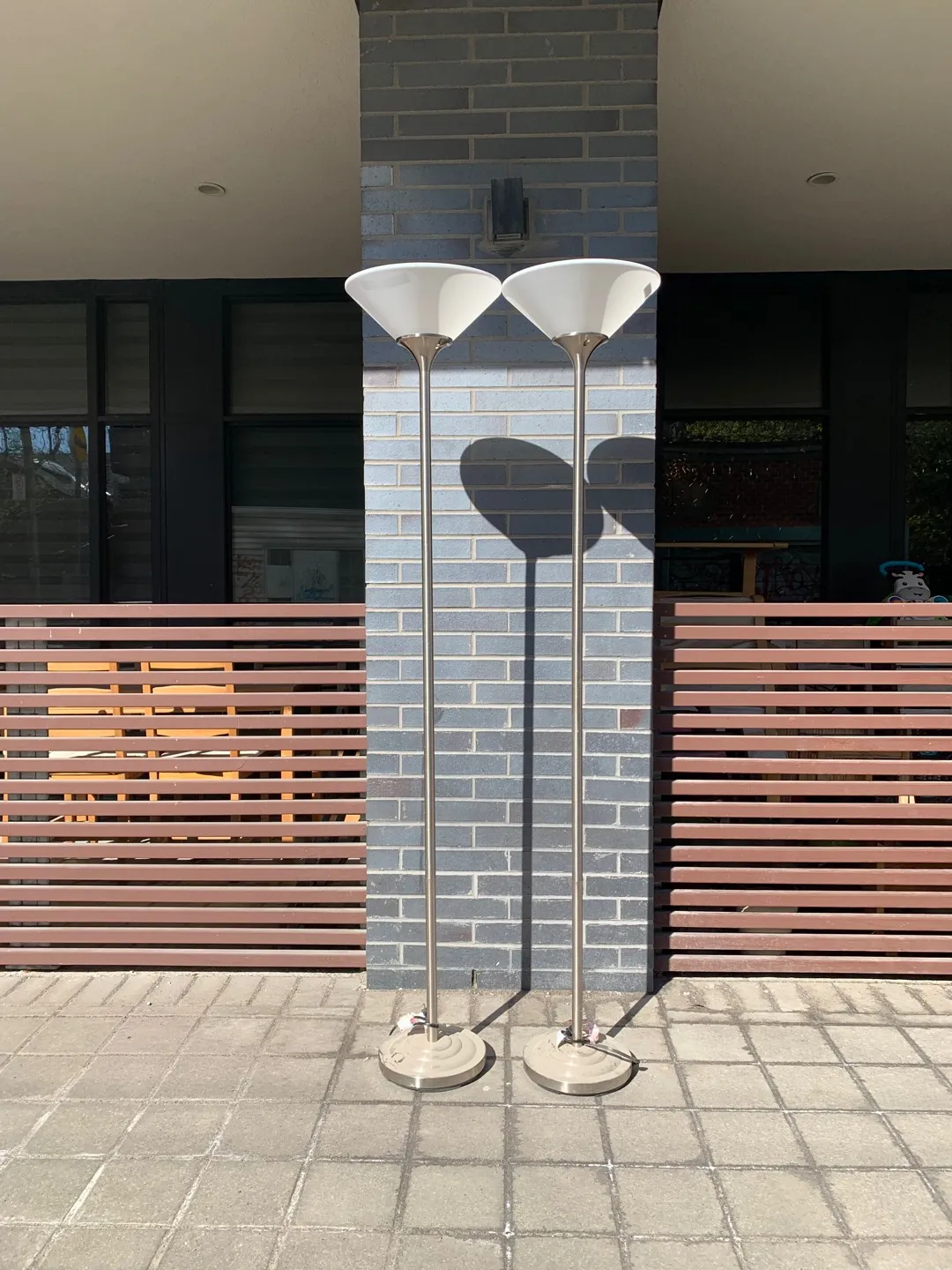 Similar to the Wendelgard 71" Torchiere Floor Lamp: https://www.wayfair.ca/lighting/pdp/winston-porter-wendelgard-71-torchiere-floor-lamp-wnsp2038.html $160 + tax = 180.8 x2 = $360