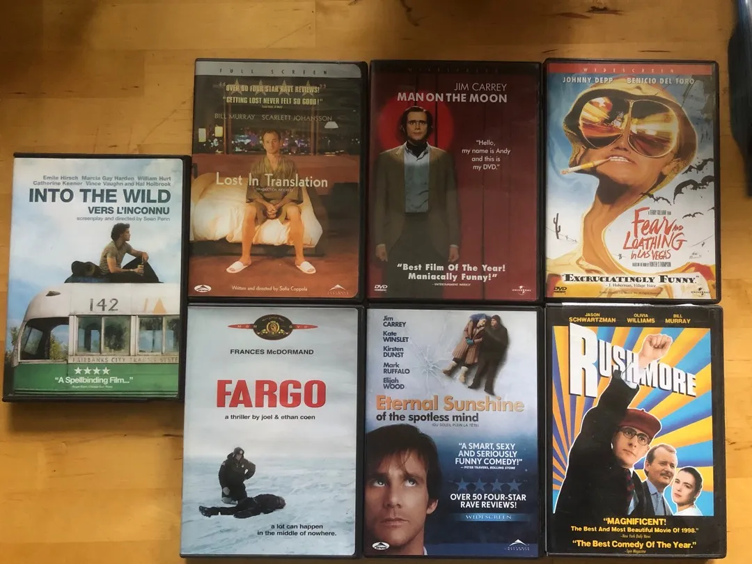 7 great DVDs: Fargo Fear and Loathing into the wild man on the moon rushmore eternal sunshine of the spotless mind lost in translation