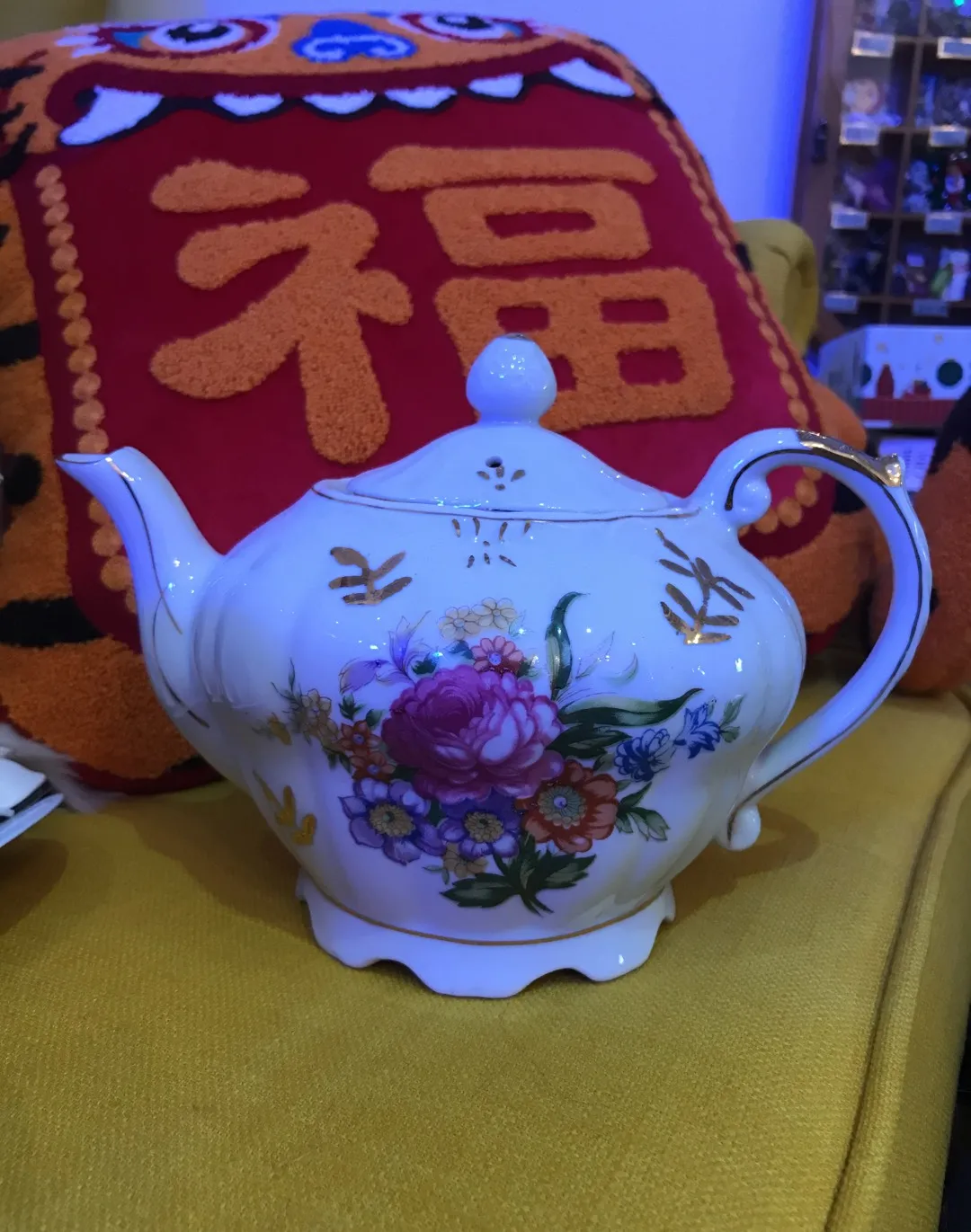 Vintage item, new condition, never used just displayed, with tag still inside for gifting Winds up at the bottom and plays music when you lift to pour tea Made in Japan