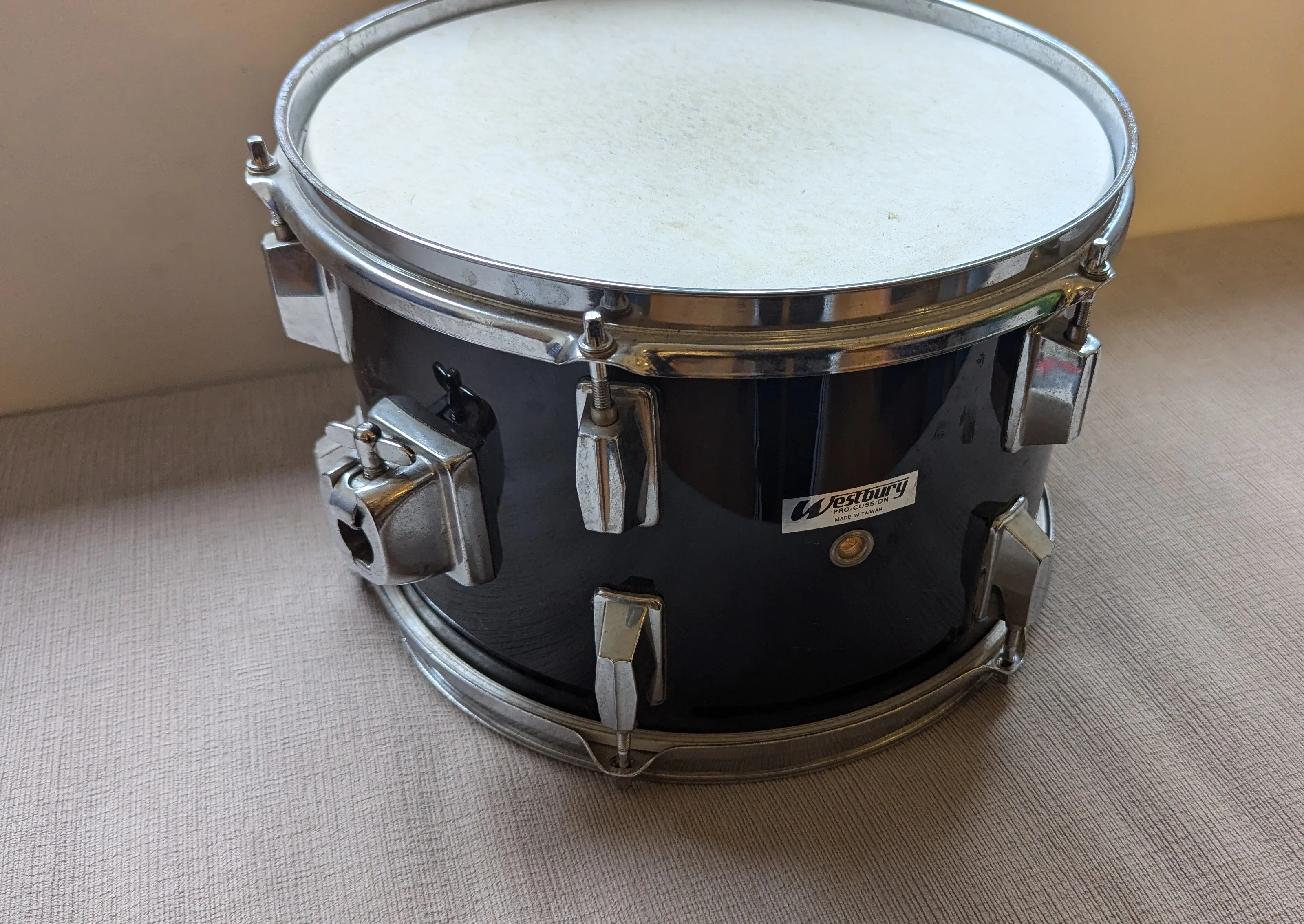 Black drum with chrome hardware. Made in Taiwan