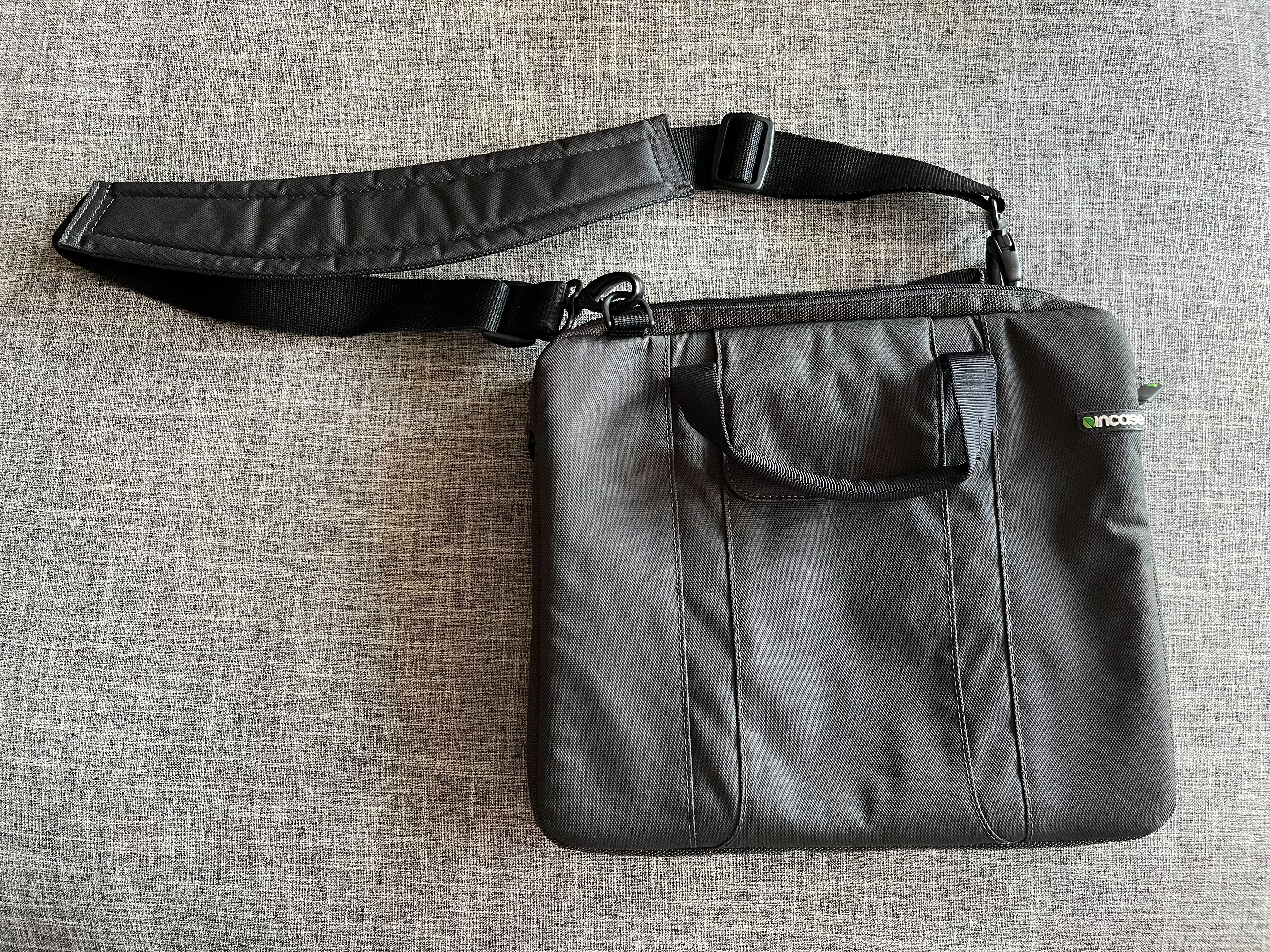 Fits 12” laptop (measurement of the diagonal) Comes with 3 pockets: 2 exterior, 1 interior Includes carrying strap and handles Sturdy design, reinforced base to protect from accidental drops