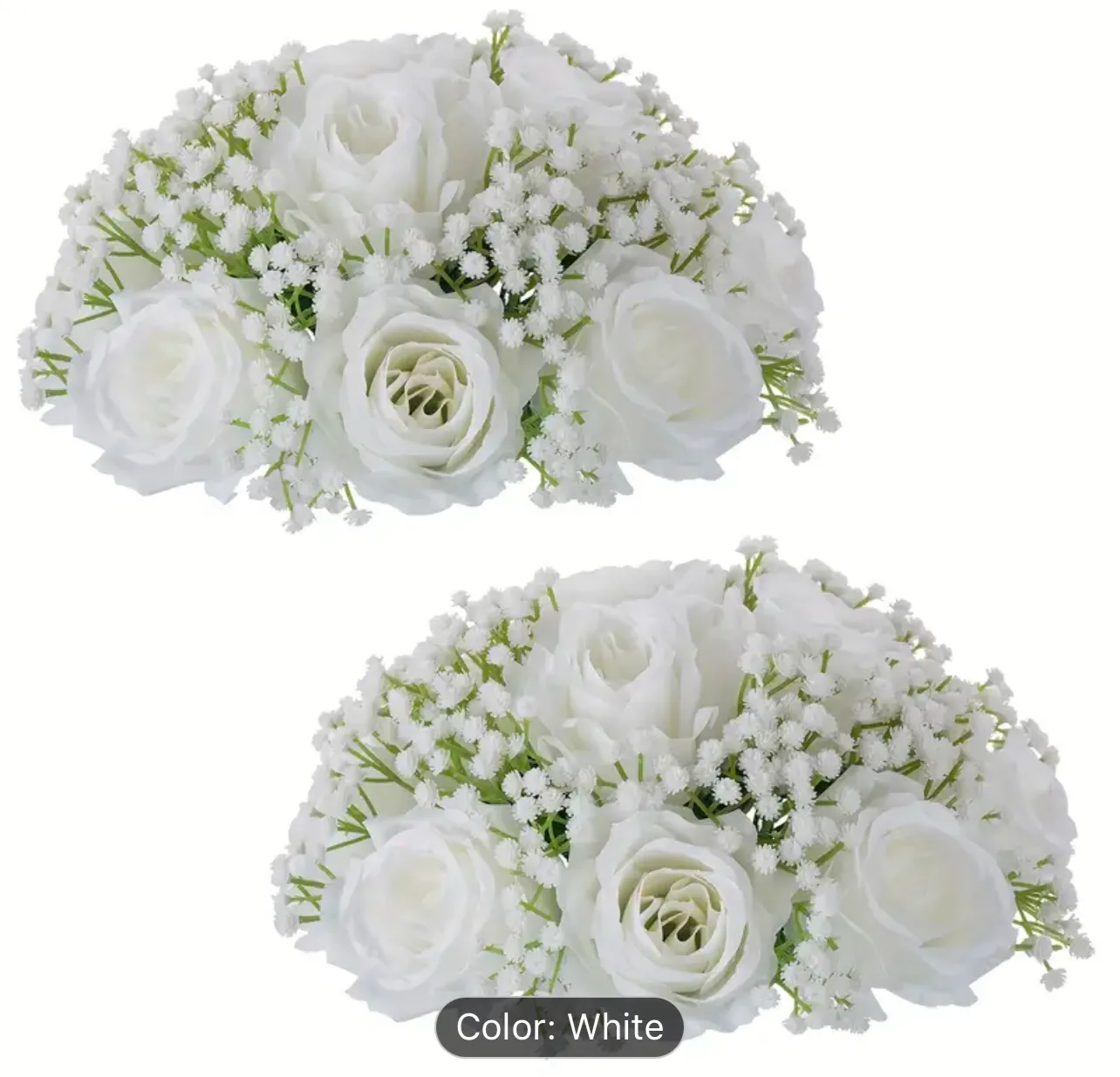 Set of 2 Artificial Rose And 'S Breath Bouquets, Perfect for Wedding Centerpieces And Table Decorations. These Kissing Balls Are Ideal for DIY Parties And Home Decor