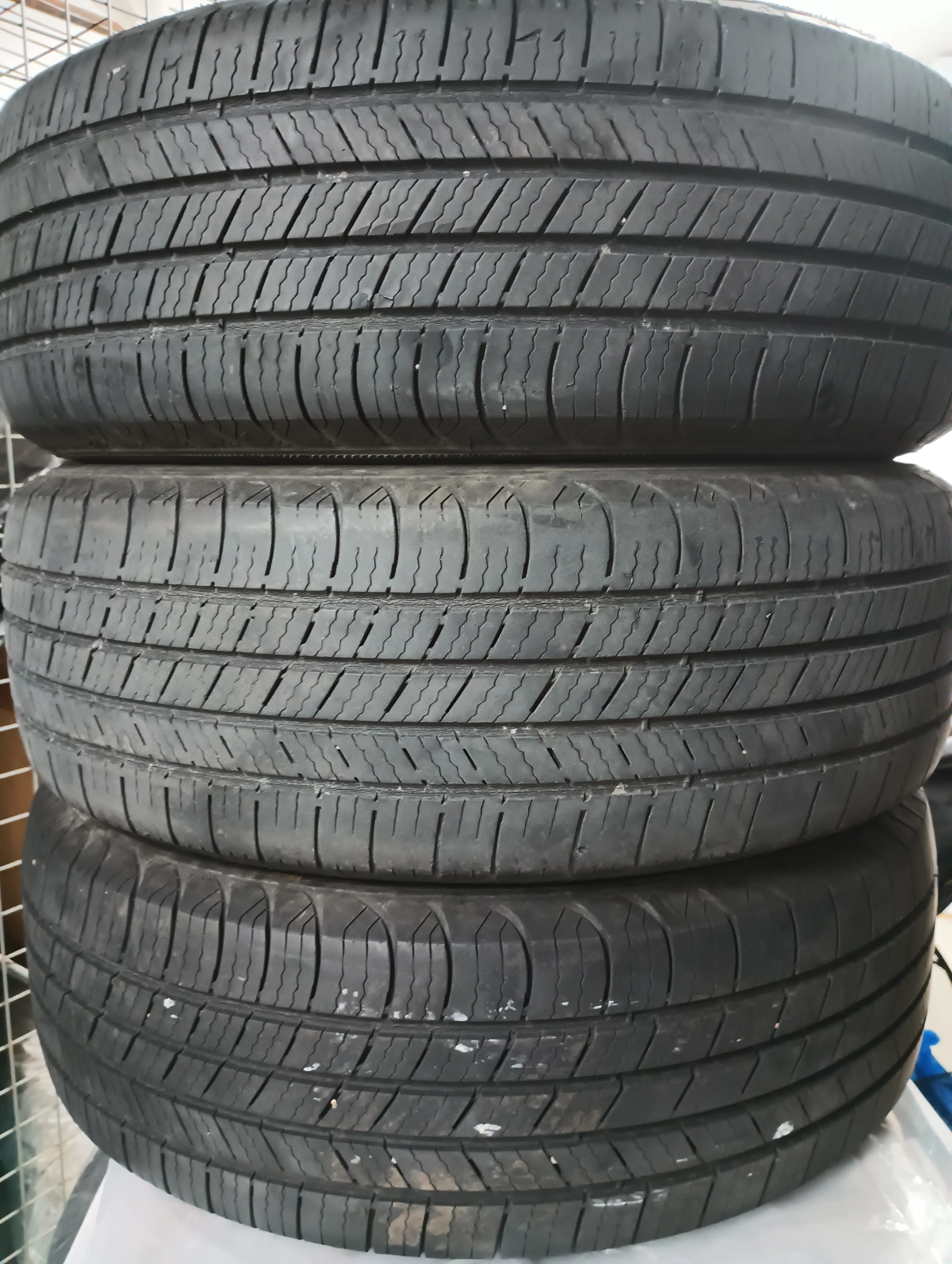 I have only 3 of these tires. Still have about 4mm tread left. I"ll gladly exchange for 15" hub caps if you have any.
