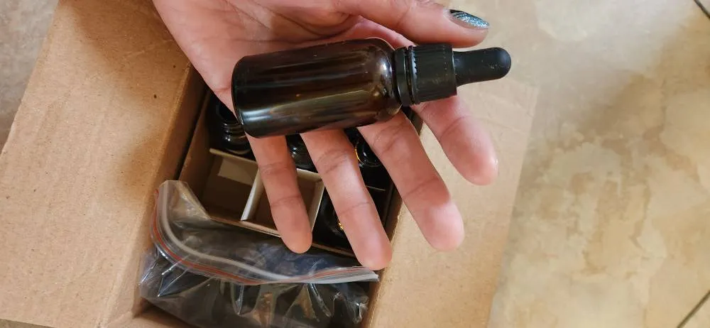 New, never used. 7 bottles with dropper lid. Ordered too many! Good for oil blends, cosmetics, etc.