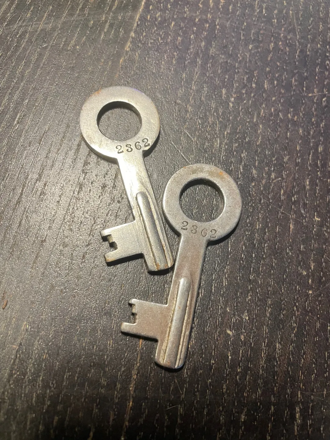 Two iron keys from 🇩🇰 Denmark. Approx. 2” long, Bic lighter for scale.