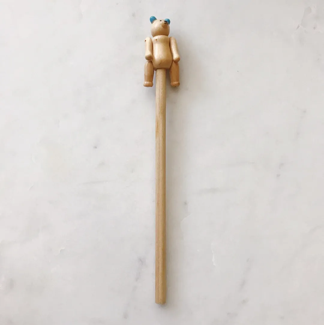 Never used pencil with adorable articulating wooden bear on top. No mistakes allowed, wooden bear does not erase!