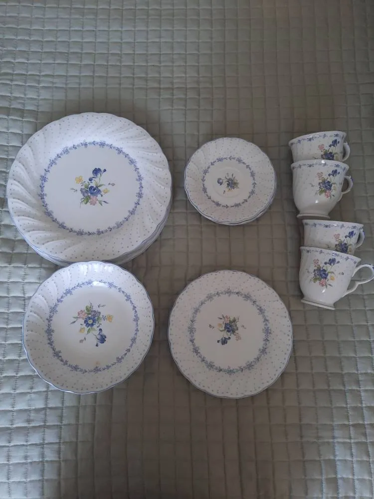 Not perfect, most of it is in new condition though. One dessert plate broke, one bowl has a chip, and only 2 of the other plates have a glaze patina imperfection