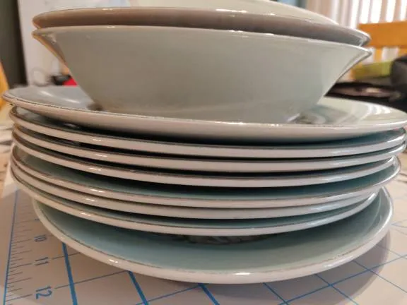 7 dinner plates 1 bowl 2 serving bowls 1 platter
