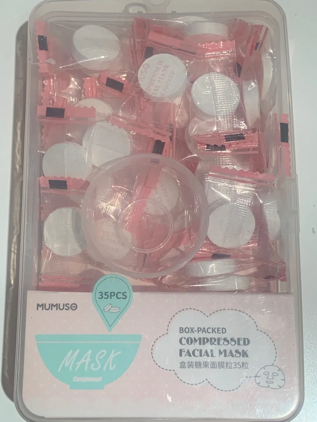Comes with individually sealed compressed facial masks with a small container for liquid. Took one or two only.