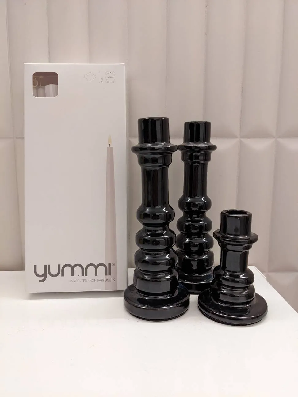 Brand new, giftable set, tall one is 8" high, short one is 4.5" high *candlesticks traded