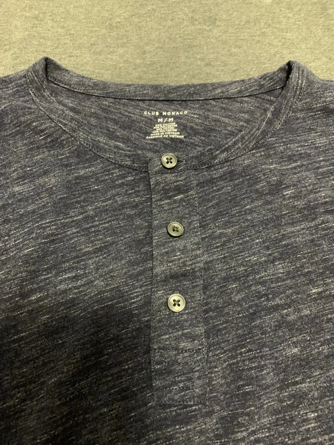 Size: Medium (M) Style: Long-Sleeve Henley Colour: Heathered Blue Condition: Worn once (not my size)