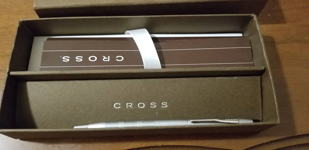 Beautiful chrome ballpoint pen in gift box. My dad's old set, he asked me to get rid of it. Engraved with my dad's name - would wait til trade to reveal it for privacy reasons.