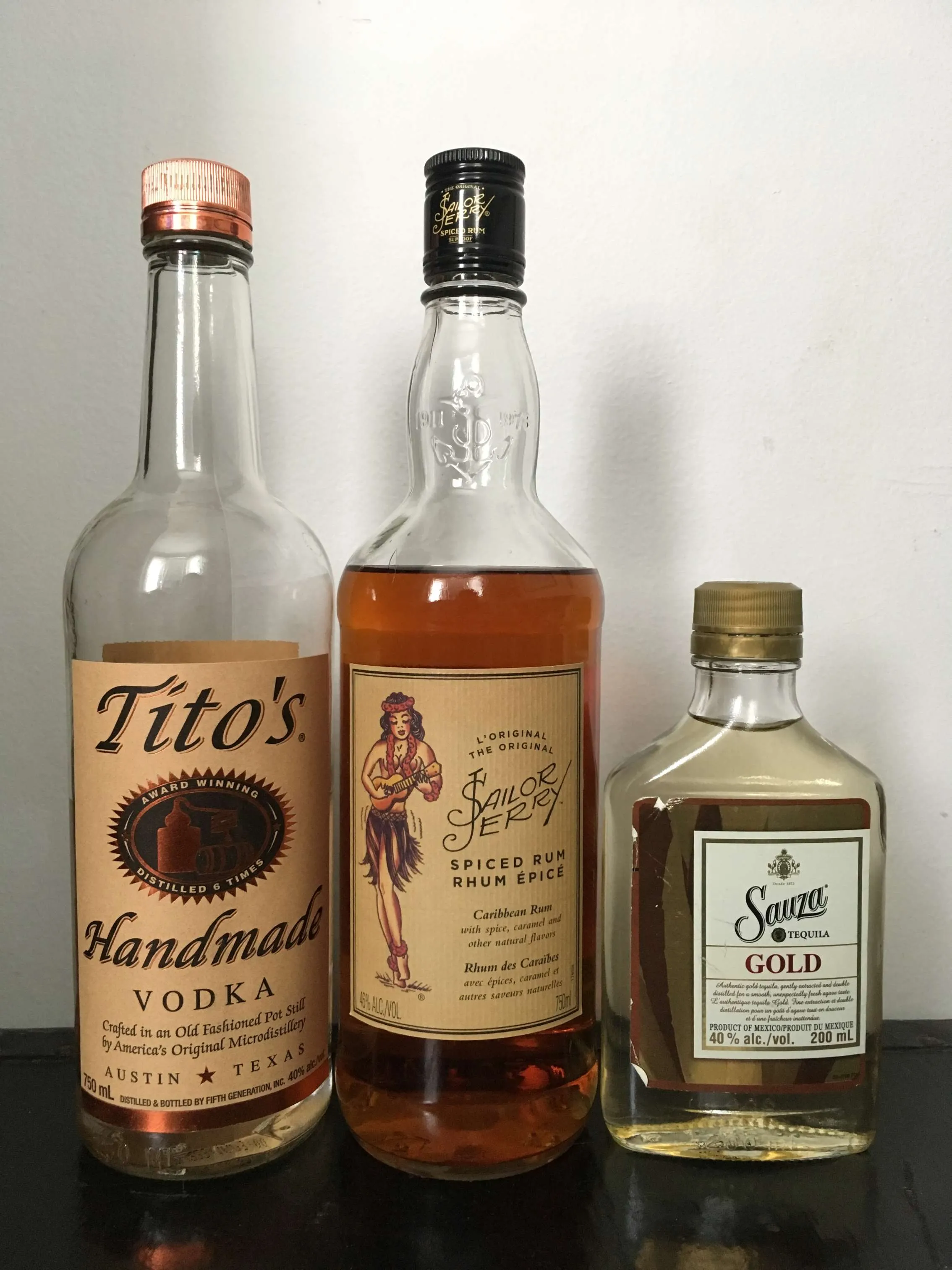 Up on offer are a package deal with 3 bottles of liquor. I'm a bit of a collector and have quite a few but don't really reach for these ones too often so I'm happy to trade them. Everything has been properly stored and nothing's tampered with. Check my reputation. The package is 750ml Tito's Handmade Vodka at 50% (LCBO $35), Sailor Jerry Spiced Rum at 90-95% (LCBO $30), and Sauza Gold 200ml new but not sealed (LCBO $10).