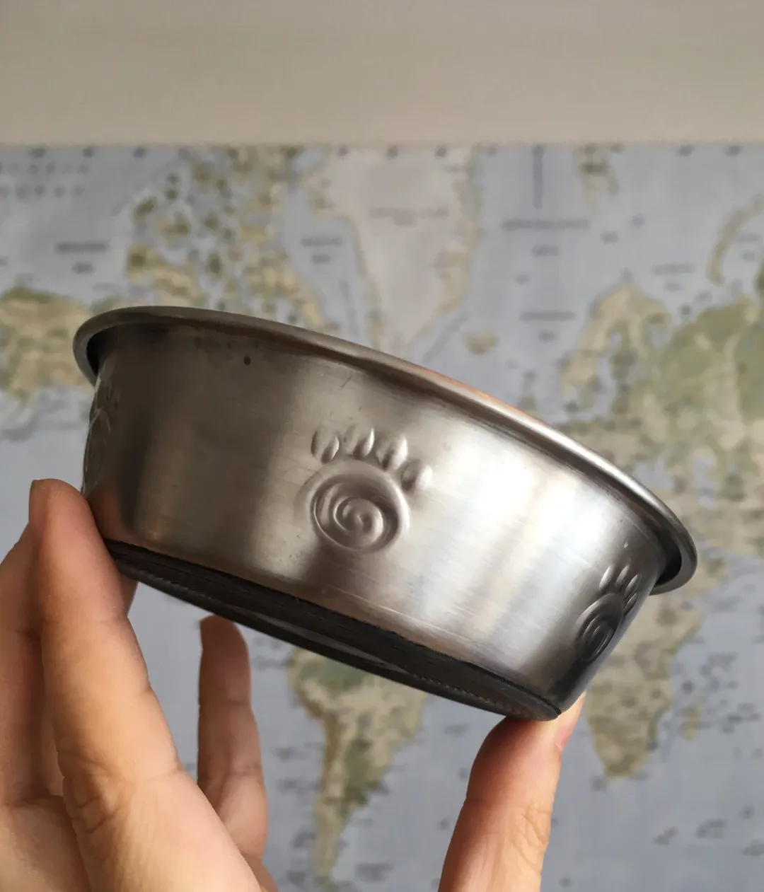 For your kitty: Stainless steel w rubber on the base so it doesn’t slide
