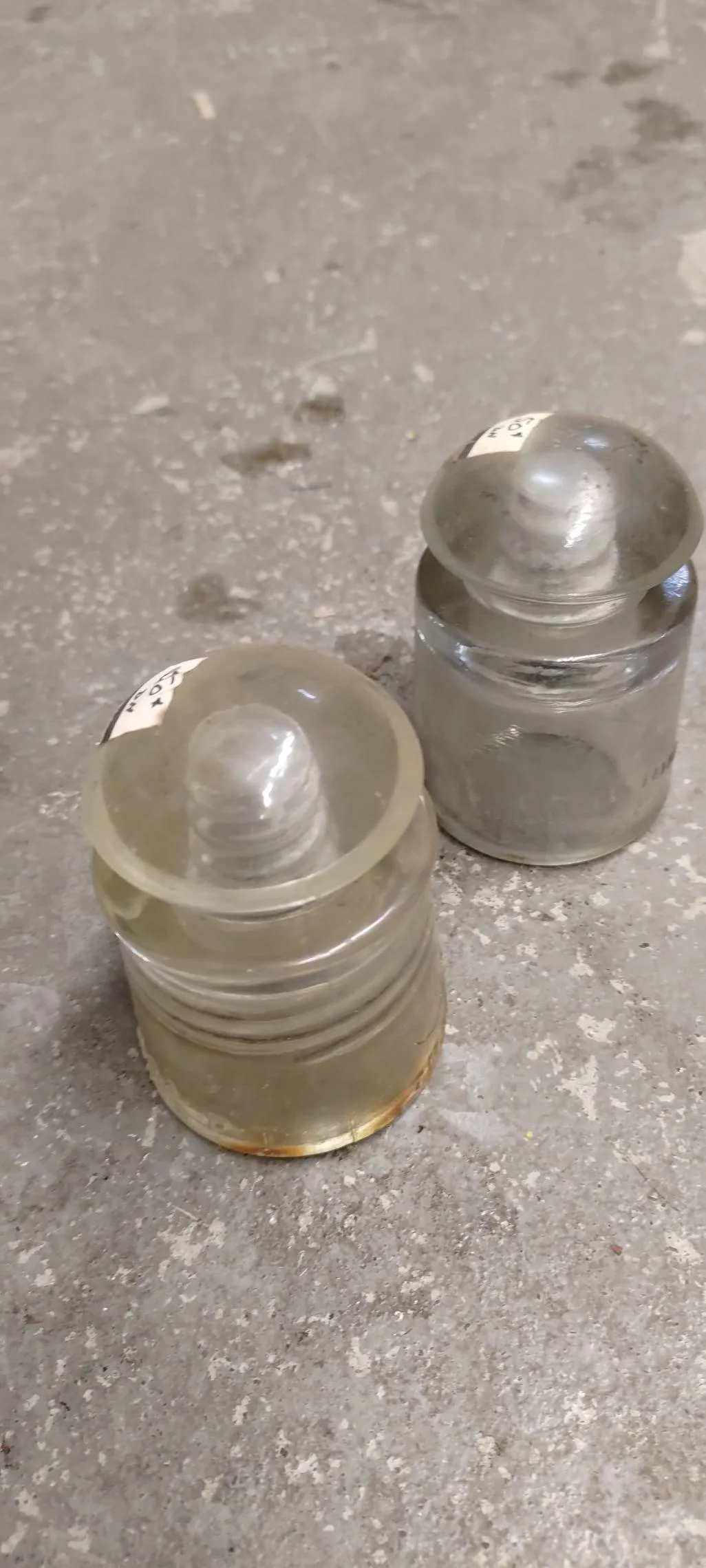 2 Old timey high voltage line glass insulators. Apparently some people collect these...