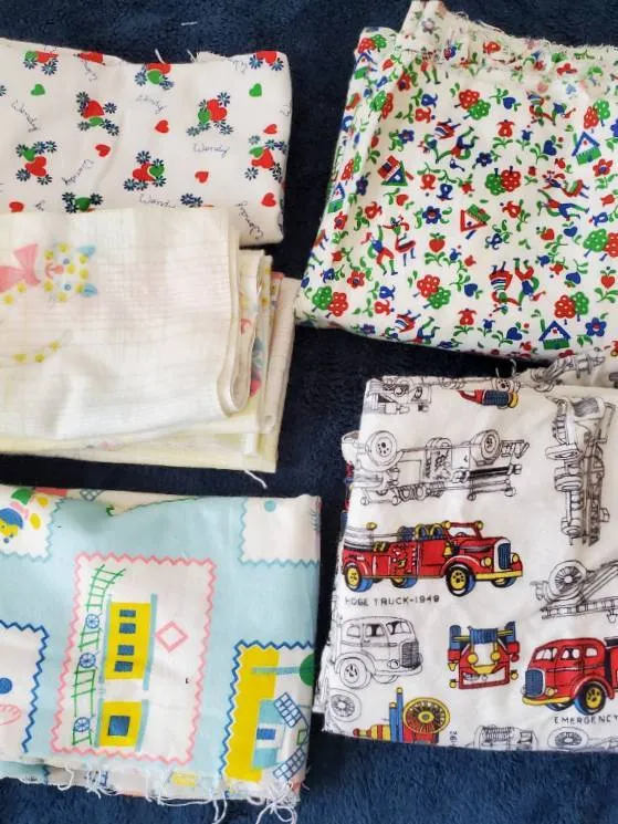 The folksy dancers one (last pic) can easily be sewn into half-curtains. I could do that or other sewing for you for a good trade (ISO only).