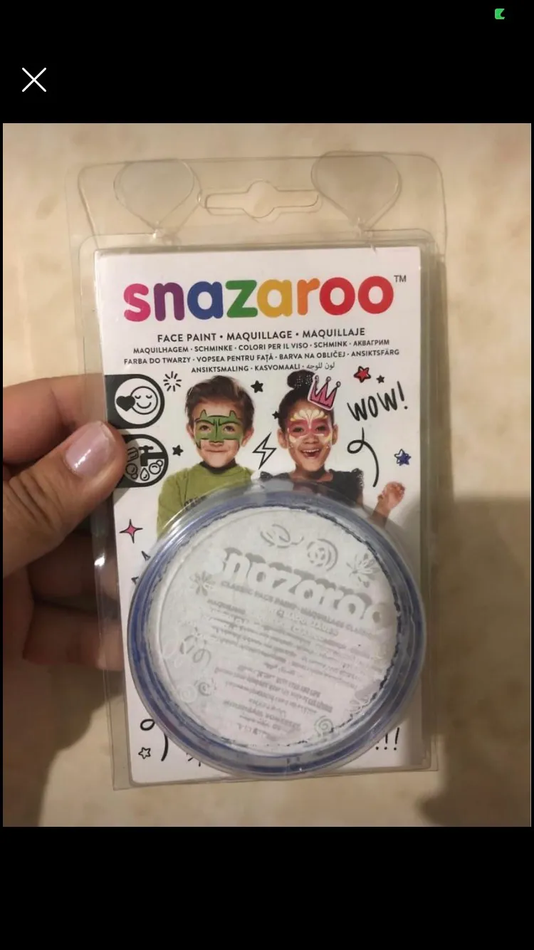 Snazaroo Face Paint white in colour, Is 18ml in size. This was only used once, disinfected and placed back in the package.