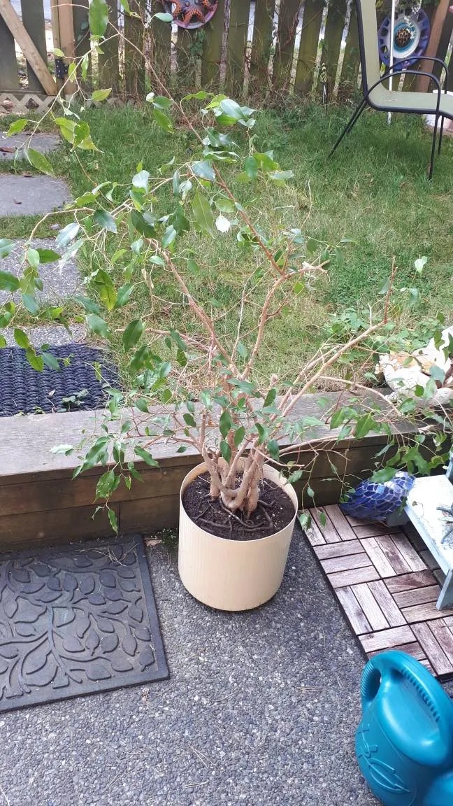 My heart broke seeing there. So we packed it up and took it camping with us, hence why we were out in the Valley, then brought it home with us where I have nursed and loved it back to health. Its around 4ft tall and in a nice cream coloured planter. Its too big for our space now and needs a new home💗 Only put outside for photos, which clearly I'm not very good at photographing this plant haha Its shedding some leaves, I think because the seasons change and this is technically a tree. At least that's what I've been told is going on with it