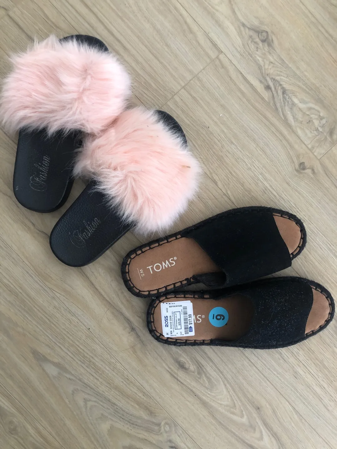 They’ve both only been worn indoors maybe once or twice. The black ones are a size five so just ignore the sticker. $8 value.