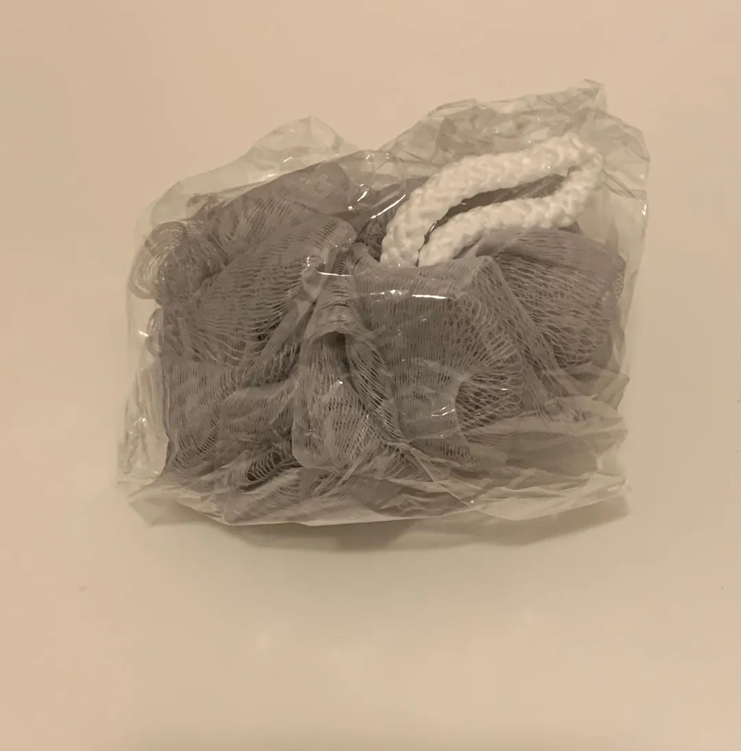 Brand new in package. Small grey shower pouf. Free or add-on.