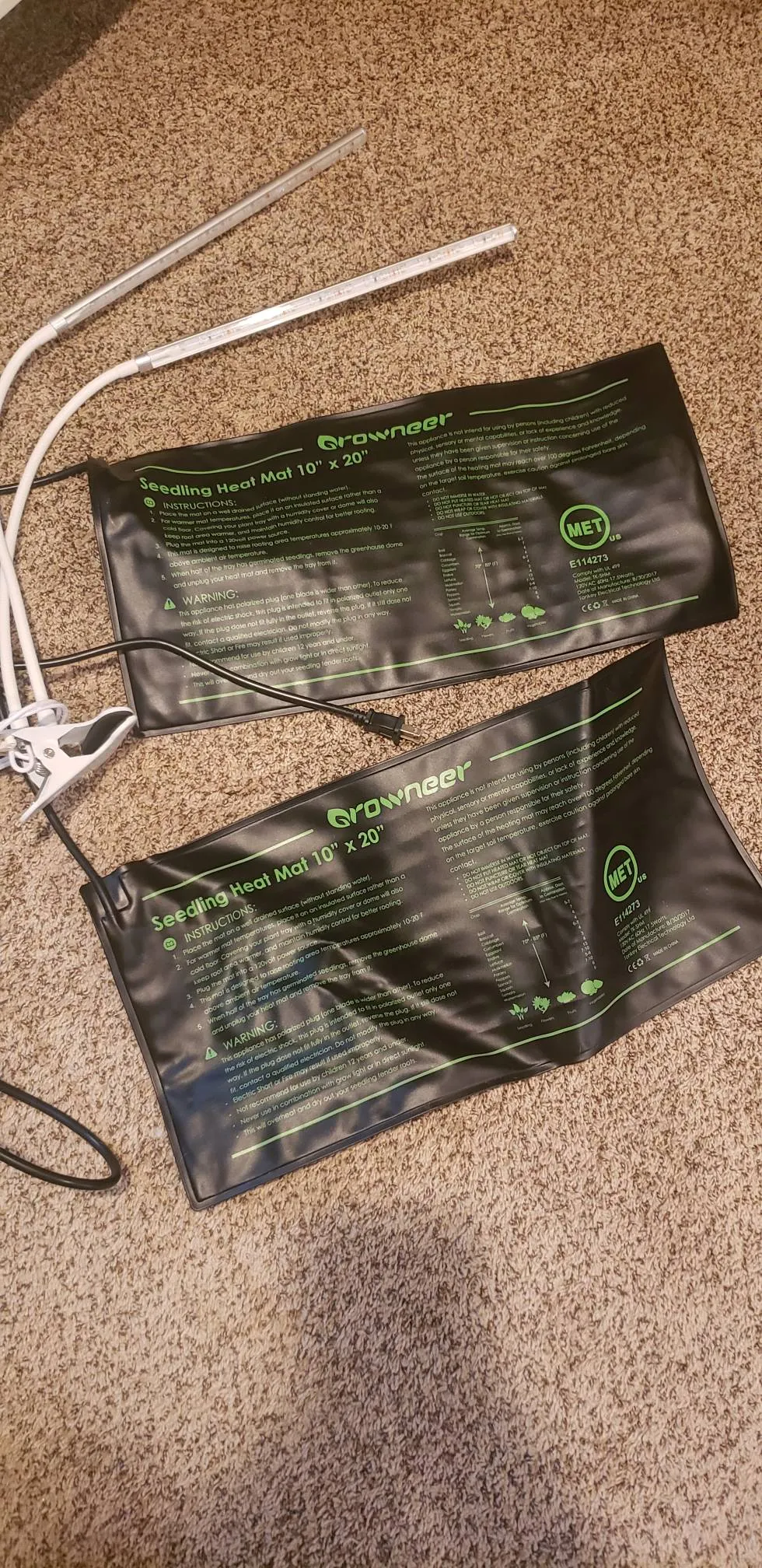 2 seedling heat mats and 1 grow light