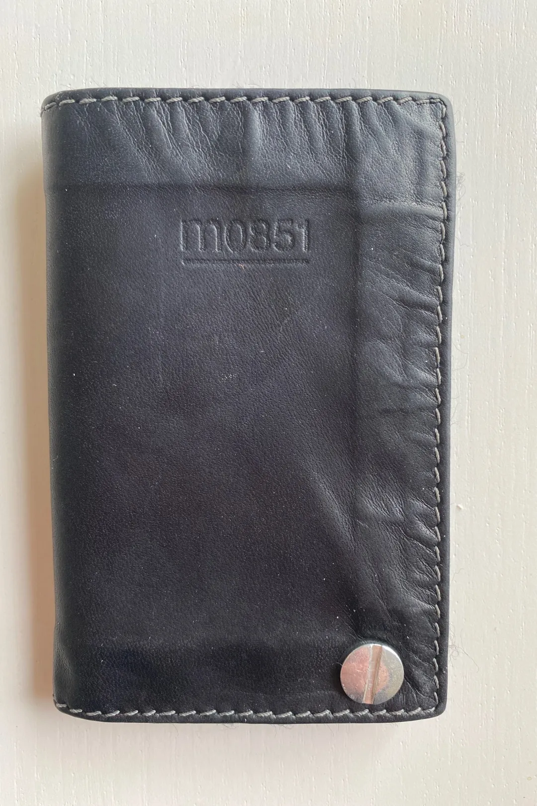 Made in Canada Montreal company. Real leather. Holds 9 cards, but two of the sleeves are torn because I tried to put more than one card in! Lightly worn. Not looking for much!