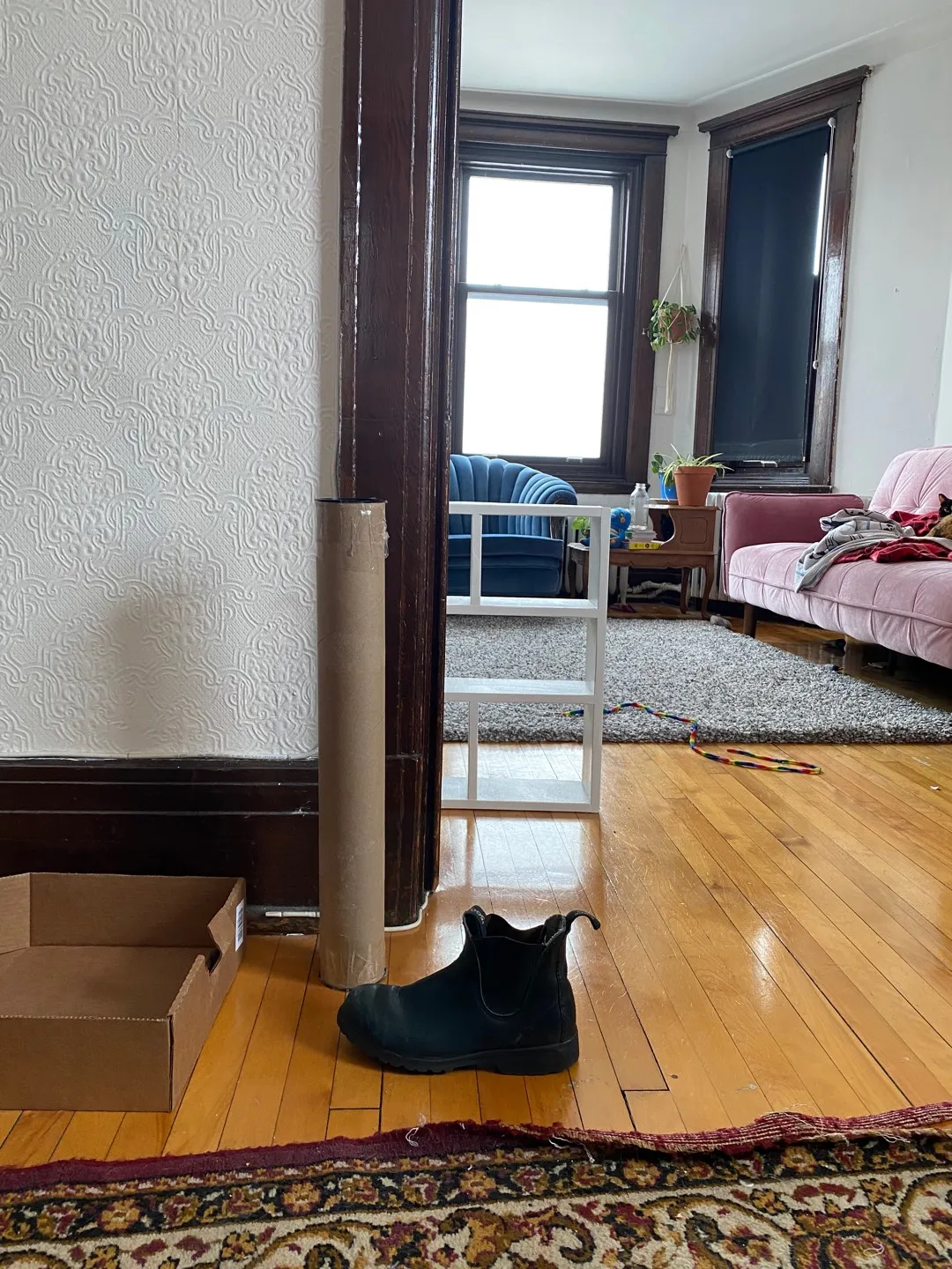 Cardboard mailing tube! Used once bc my mom mailed me some art. Blundstone for scale