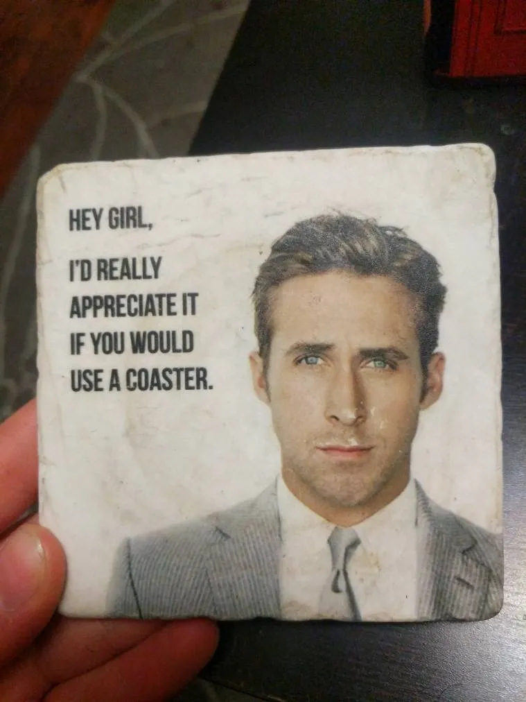 Got this cute ass coaster at the one of a kind show a few years back. I love it, but it doesn't really go with my decor anymore. Good quality, marble with Canada's prince on it.