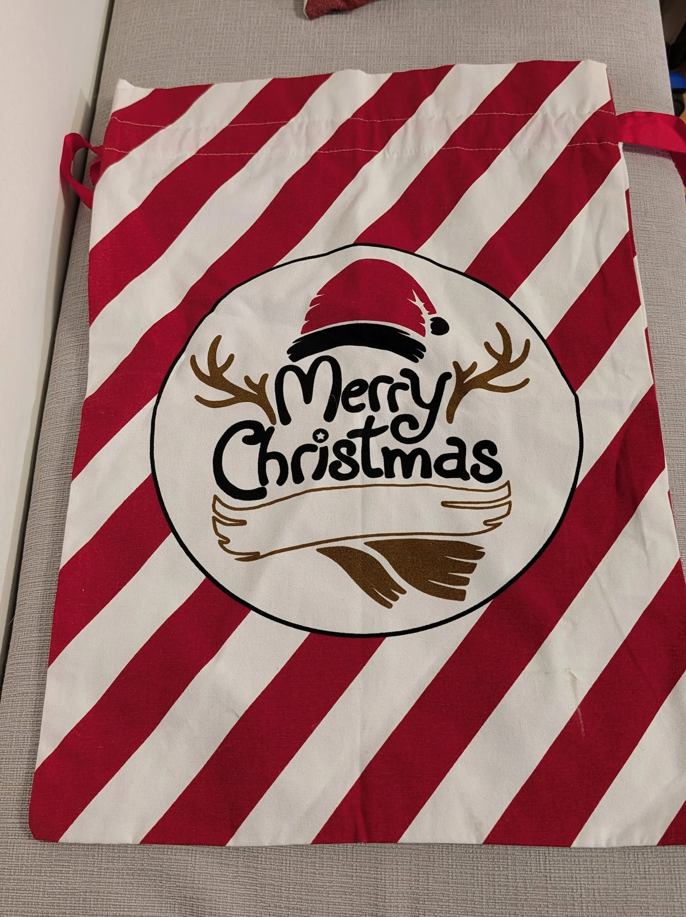 Merry Christmas Striped Canvas Gift Bag