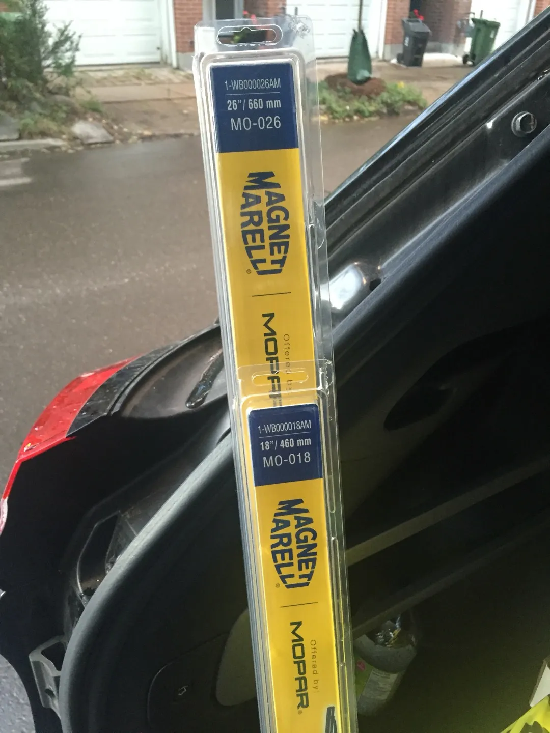 26 inch drivers side, 18 inch passenger side. Brand new in box. Gift cards preferred.
