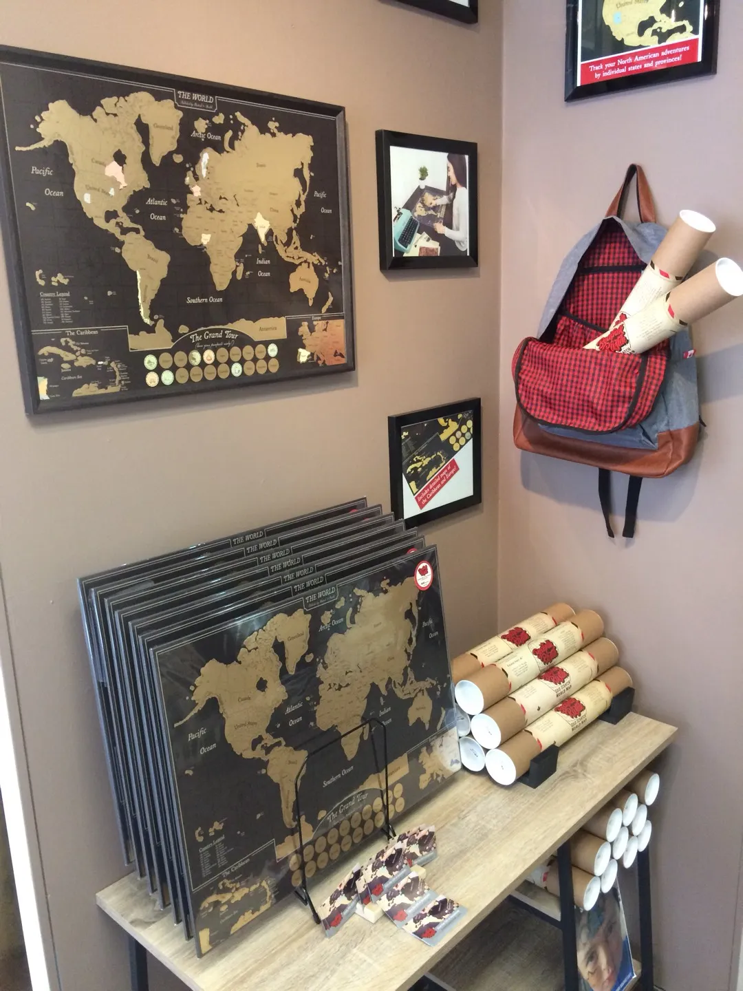 Limited supply of foamcore mounted maps, ready to hang, with guitar pick for scratching, each wrapped and ready to gift! Just in time for March Break, show off where you’ve been!